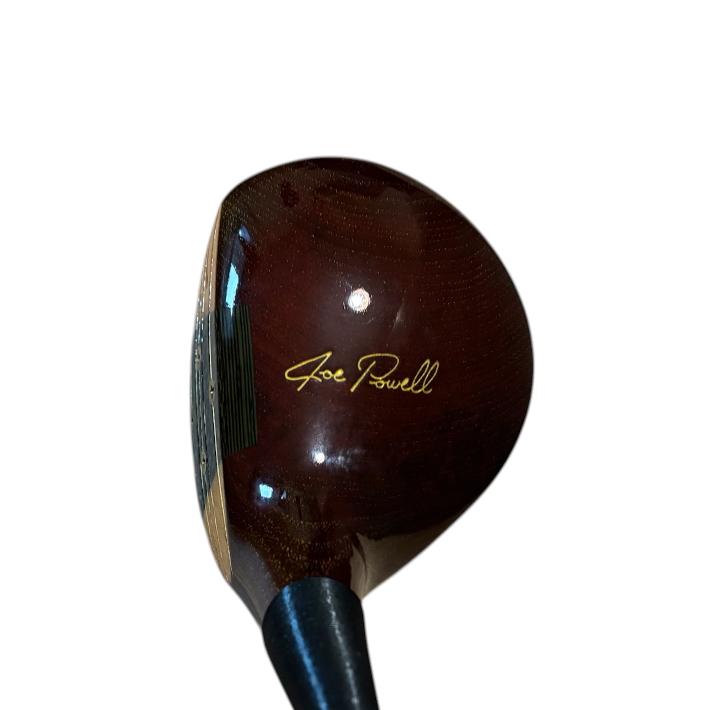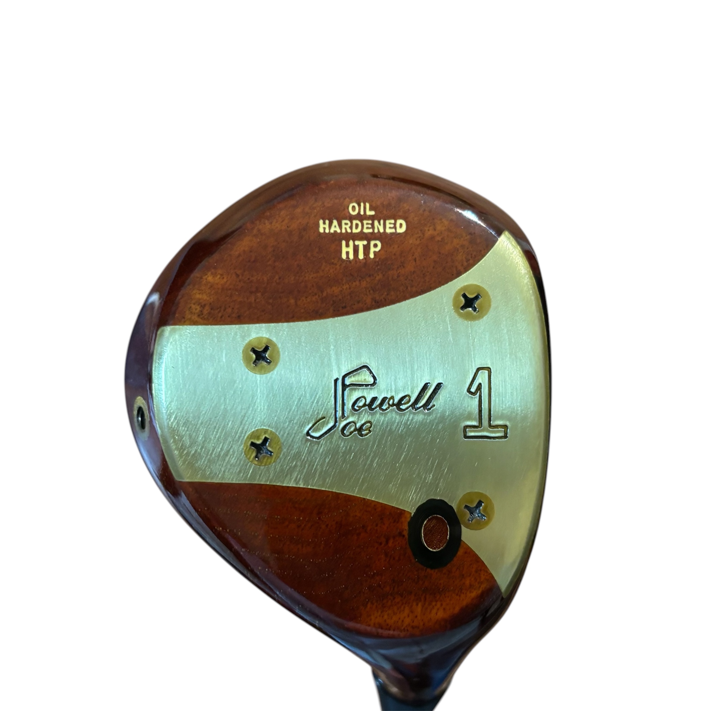 Original Joe Powell club made from select USA persimmon. These magnificent clubs are the very last remaining original new stock which were made and stored in Joe Powell HQ Sarasota, Florida. HTP stands for High Tech Persimmon. The use of a graphite shaft and a graphite insert was revolutionary at the time these clubs were made.